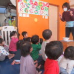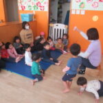 <クリスマスってなに?> クリスマスの夜に赤い服を着たサンタさんが、ぐっすり眠っている子どもの所にプレゼントを持ってきてくれるんだよ!と、どんぐりのみんなに話をしました。子どもたちの反応は、「知ってる…