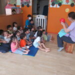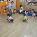 <歌が大好きなどんぐりさん> お集まりでマラカスを持って歌を歌いました。カエルの歌やキラキラ星、秋の歌の「どんぐりころころ」も歌いました。秋の歌もこれからいっぱい歌っていきたいなと思います。「次は何の…