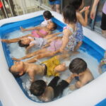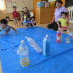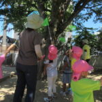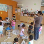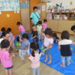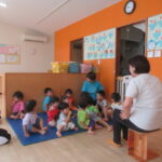 <紙芝居:あぶらぜみのあぶちゃん> アブラゼミの誕生から羽化までを描いた紙芝居を読みました。身近な話はイメージもしやすく、話にどんどん入り込んでいた子どもたち。木に登る様子や誕生した時などは表情で伝わ…