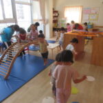 <元気いっぱい!> 朝のお集まりで名前を1人ひとり呼ぶと、普段幼稚園に行っているお兄さんお姉さんがとっても元気に返事をしてくれていました!どんぐりのお友だちもその姿を見て真似をして、元気いっぱいに返事…