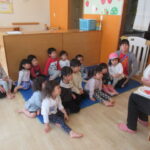 <はるのうた> 「チューリップ」や「ちょうちょ」など、春の歌をうたいました。それまで泣いていた新しいお友達も、ピアノの音を聞くと体を揺らして笑顔になりました😊「もこ もこもこ」の絵本を読むと、みんな興…