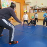 <お歌を歌おう!> 豆の入った手作りマラカスを振って節分の歌をいくつか歌いました。聞いた事のある歌になると張り切ってマラカスを振って楽しんでいましたよ♪ <どうぶつ真似っこ体操> 真似っこするのが大好…
