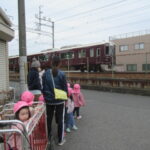 <公園で遊ぼう!> 絵本『パオちゃんのすべりだい』を読みました。それからみんなも滑り台のある公園に出発‼︎ いつもの散歩道で窓辺にいるネコちゃんを見つけて「公園に行ってきま〜す」とご挨拶する子どもたち…