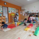 <今日も賑やか♪> 朝から元気に登園してきてくれた子どもたち。好きな遊びをリクエストする子どもも多く、リクエストされたおもちゃを出すとニッコリ笑顔で朝からたっぷり遊びました。 <朝のお集まり> 「朝の…