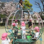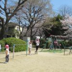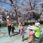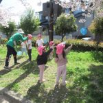 <元気に外で遊んだよ!> 今日も半袖になって園庭で遊びました。もうすっかり園庭の桜は散っていて、残りの花びらも春の風に乗ってヒラヒラと舞っていました。その花びらを捕まえようと、一生懸命追いかけているお…