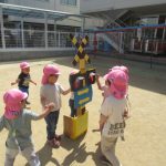 <ゆっくり ゆっくり> 新しいお友だちが少しずつ増えてくるころになりました。朝のお別れで不安そうにお母さんとお別れしたり、慣れないことがたくさんでどの子もがんばっていると思います。楽しいところなのだな…