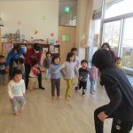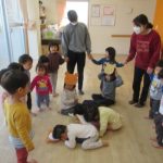 朝、泣いて登園した子どももいましたが、周りの子ども達が楽しく遊んでいる様子を見て、いつの間にか泣き止み、遊びの中へ入っていました。お別れの時はさみしくても、ちゃんとお母さんが迎えに来てくれることを分か…